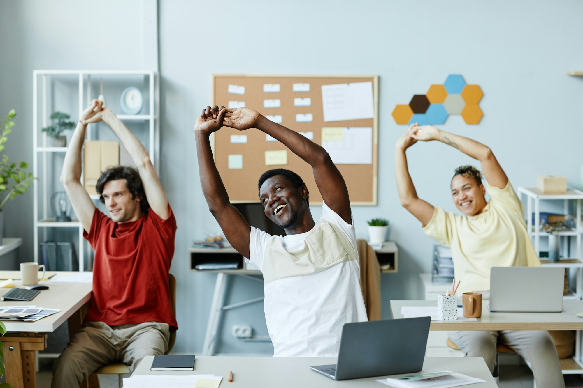 Stretching sessions in the workplace, aimed at improving employees’ physical well-being.